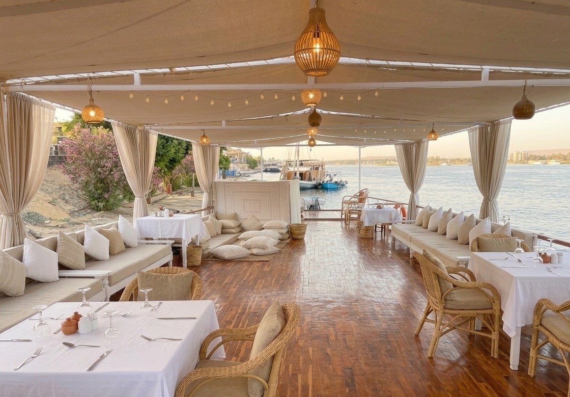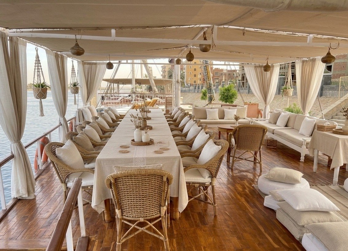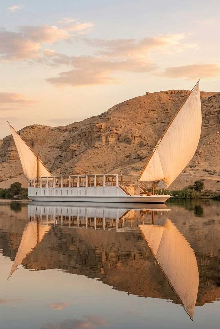 Inspired by ancient traditions and guided by a deep respect for the Nile, we offer an experience rooted in eco-sustainability, cultural reverence, and spiritual renewal, featuring solar-powered systems, locally sourced organic cuisine, and wellness rituals drawn from Pharaonic healing arts. Every element is crafted to honor both the Earth and the spirit. As we sail gently along the Nile River, we invite you to reconnect with nature, with heritage, and with the deeper rhythms of life itself. This is a voyage of remembrance, regeneration, and responsible luxury.